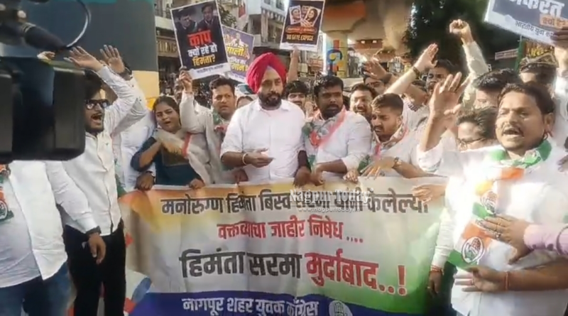 नागपुरात युवक काँग्रेसचा संताप ; हिमांता बिस्वा सरमा यांच्या वक्तव्याविरोधात जोरदार आंदोलन