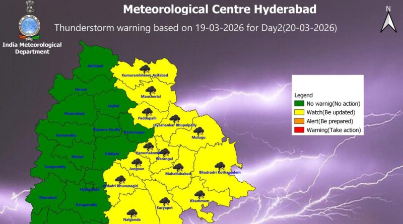 India Meteorological Department (IMD) has forecast thunderstorms in 14 Telangana districts for Friday (March 20, 2026)