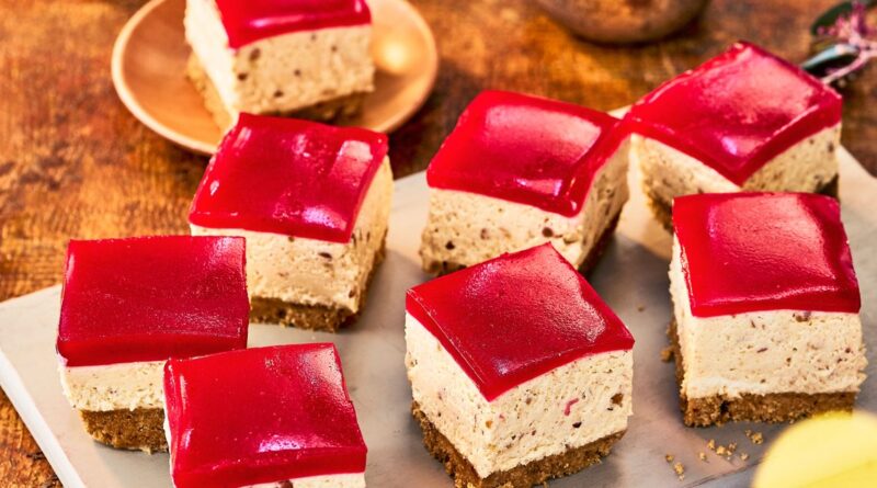 Another impressive no-cook dessert is these PB&J cheesecake squares. Top your cheesecake with jelly and cut into squares for a creamy bite-sized delight. If you’re not a fan of jelly, opt for a melted chocolate topping instead, turning these squares into peanut butter cups.
