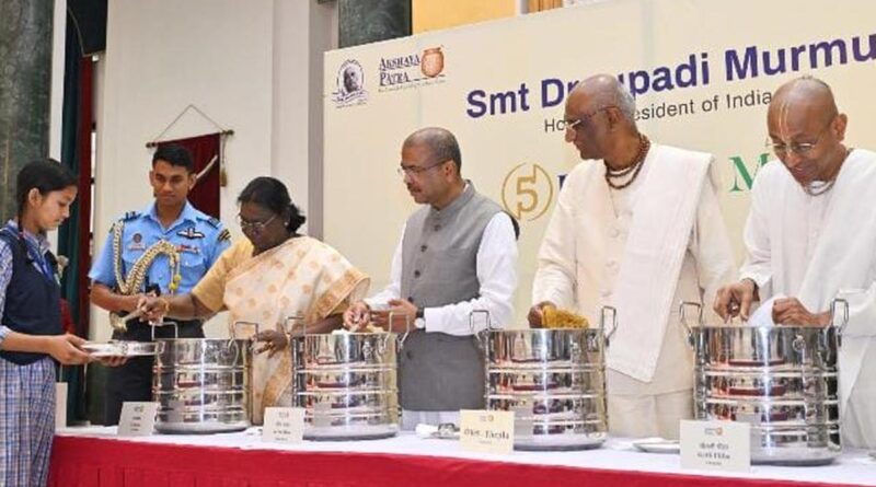 President Droupadi Murmu serves Akshaya Patra’s 5 billionth meal at Rashtrapati Bhavan