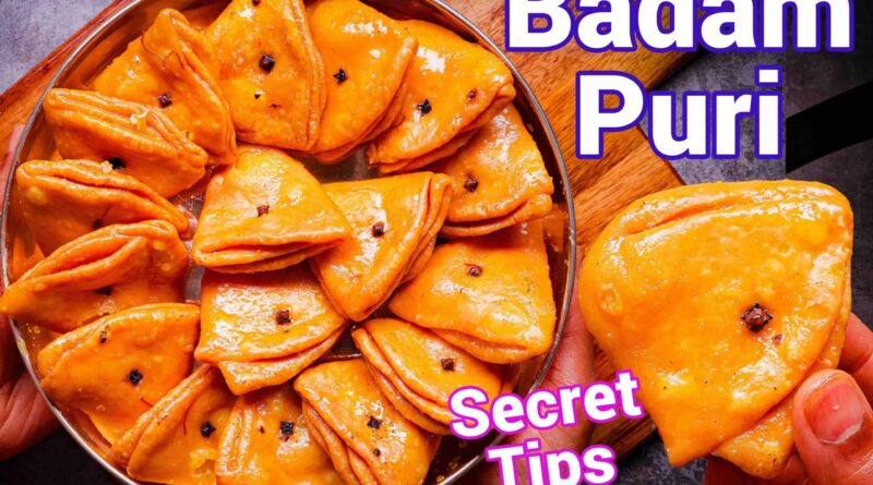 - Badam Puri is now ready to serve. Enjoy this flaky, crispy, and syrup-coated Badam Puri Recipe.