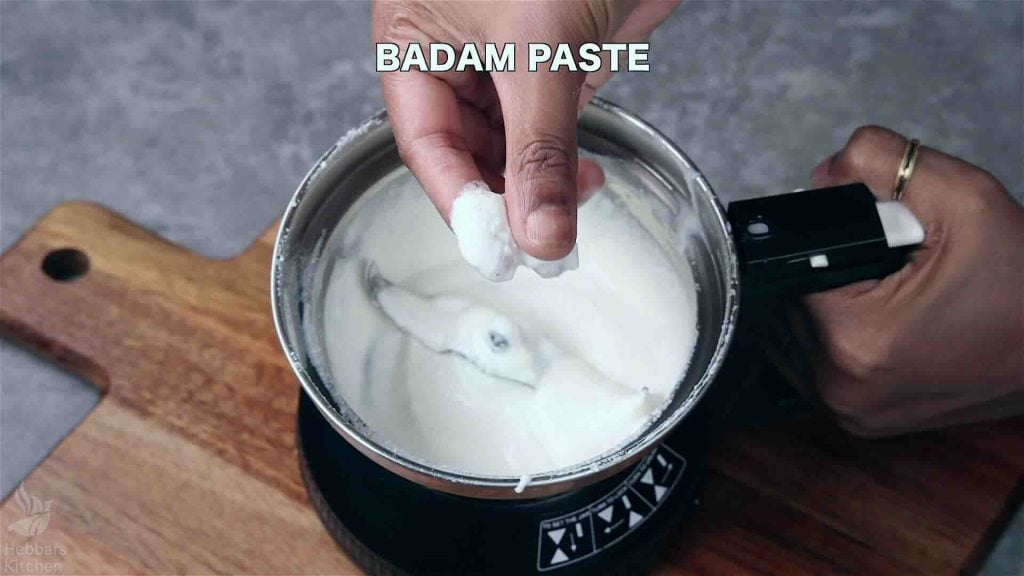 Now add the prepared badam paste and mix well.