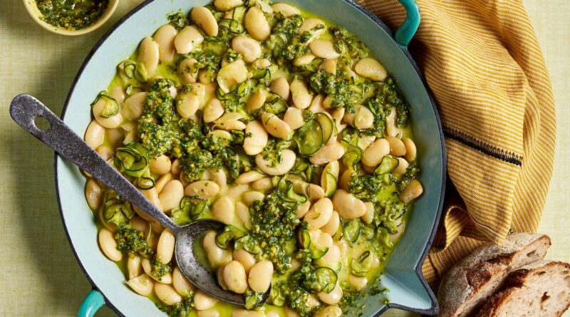 There’s plenty of variety across the plan. Our three-bean chilli layers kidney, cannellini and black beans for a rich slow-cook, while creamy butter beans are paired with courgette and pistachio pesto for a brighter alternative.