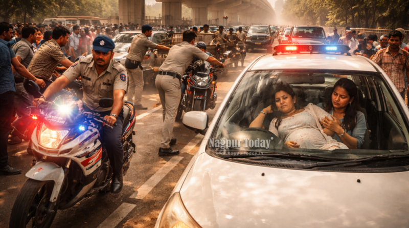 As the security cordon tightened along the Nagpur-Wardha road, the woman’s companion stepped out of the vehicle, desperate and determined. She approached the nearest police personnel, pleading for help, not knowing whether the rules would allow any exception.