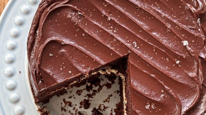 Heat the oven to 180C/160C fan/gas 4, with a shelf in the centre of the oven. Oil 2 x 20cm loose-bottomed cake tins and line the bases with baking parchment. Add the yogurt, milk, vinegar, eggs, soy sauce, olive oil and ¼ tsp fine salt to the bloomed cocoa powder, then whisk well until there are no lumps.