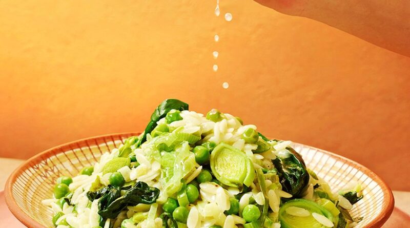 This collection of recipes celebrates spring produce at its peak. Sweet peas, prized for their bright colour and delicate sweetness, pair beautifully with herbs, pasta and grains. Spring onions are another seasonal favourite – milder and sweeter than mature onions, they can be eaten raw or lightly cooked in stir-fries, salads and noodle dishes. New potatoes also begin to appear at this time of year, and have a naturally sweet, buttery flavour that is showcased best with simple cooking.