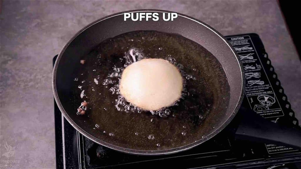 Fry in medium-hot oil till the malpua puffs up.