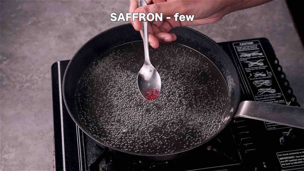 - Add few kesar, pinch saffron food colour and ½ tsp cardamom powder. Mix well. Keep aside.