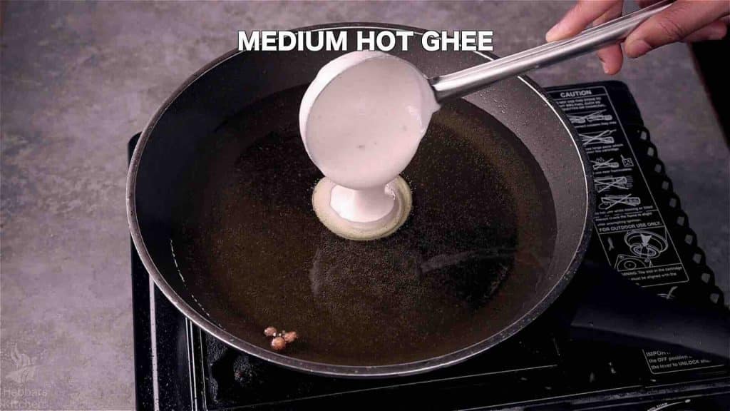- Pouring: Pour a small ladle of batter in one place to let it spread naturally into perfect round shapes.
