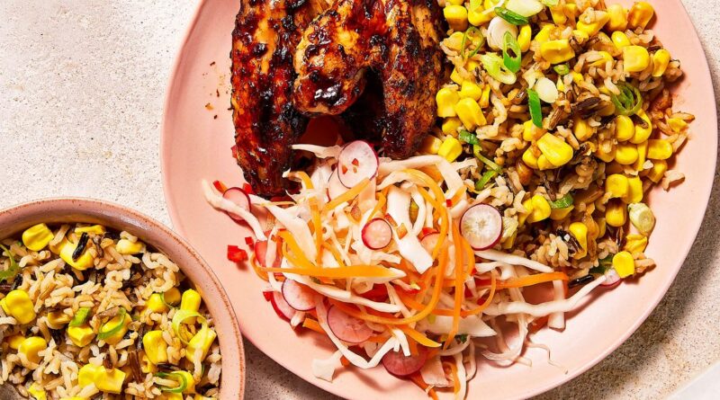 Sticky chicken wings with pickled slaw & corn salad recipe