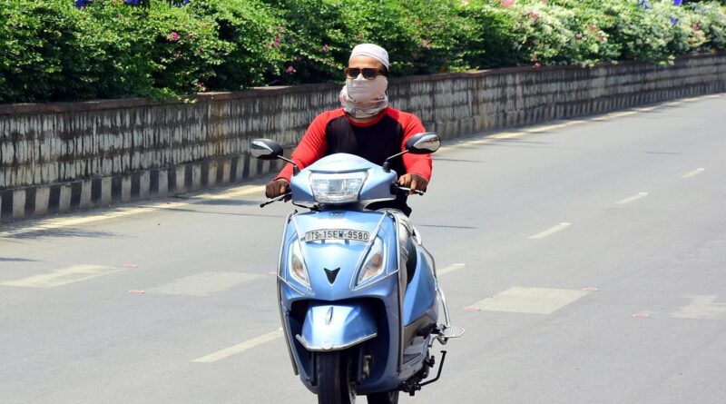 A man tied a cloth to face and wore sunglasses to protect himself from hot air on in Sangareddy district, Telangana on Wednesday (April 22, 2026)
