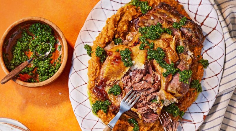 7. Slow-roasted mutton shoulder with garlic bean mash & gremolata