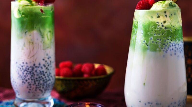 Matcha falooda is a playful twist on the classic dessert-drink that is popular in southeast Asia, combining the earthy notes of matcha with rose syrup, vermicelli and fruit. This colourful creation is layered with exciting textures – from silky noodles to chewy seeds and juicy strawberries – making each sip a new experience. It’s a fun, sweet and milky treat that looks impressive and is ideal for special occasions.