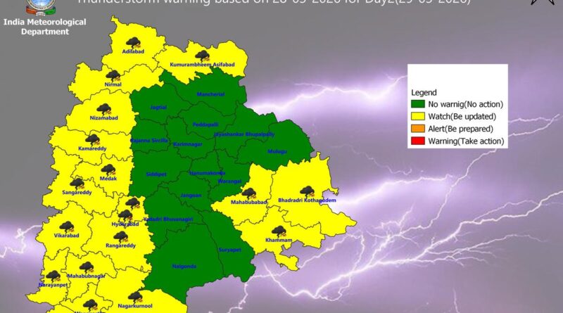 Thunderstorm forecast in 19 districts of Telangana on March 29